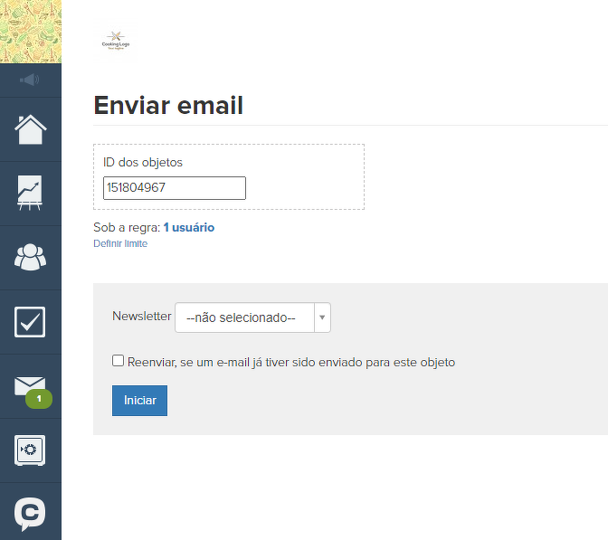 Atenção: esse recurso não se destina ao disparo de e-mails em massa. Quando você executa a ação "Enviar e-mail" para um grande número de usuários, a velocidade de envio é lenta. Para o disparo de e-mails em massa, é necessário configurar, dentro do próprio mailing, para quem e quando enviar, e iniciá-lo.