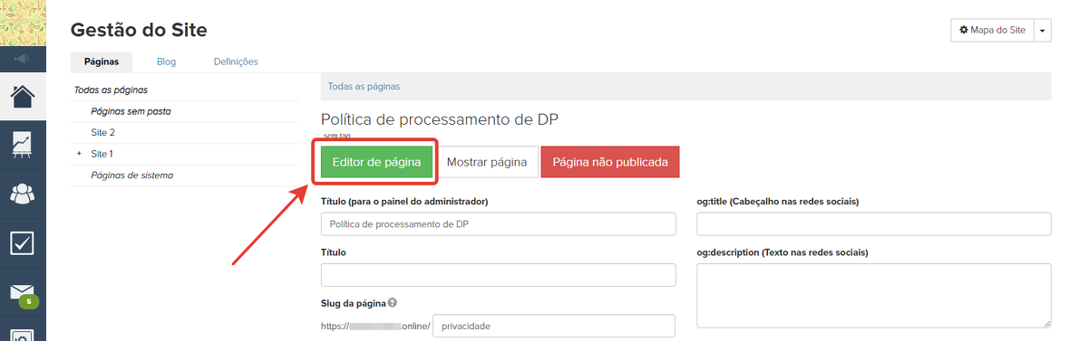 5. Após finalizar a edição, publique a página: