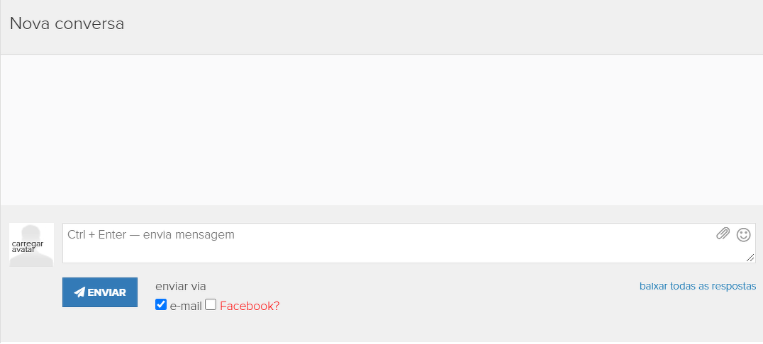 Na seção "Caixa de entrada" da sua conta, a opção de enviar uma mensagem ao usuário via "Facebook" ou "WhatsApp" às vezes estar destacada em vermelho.