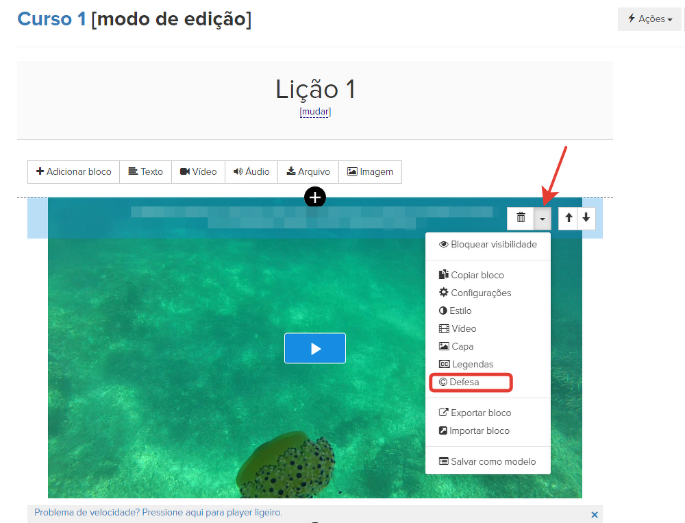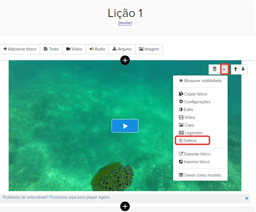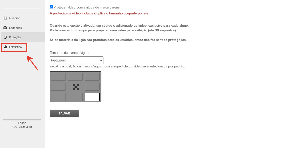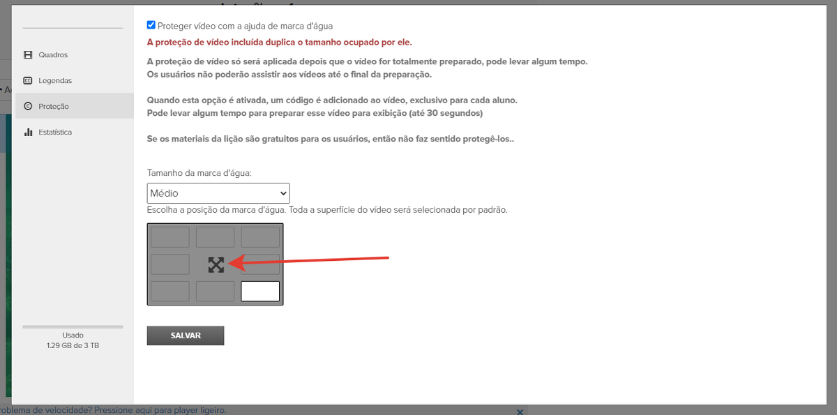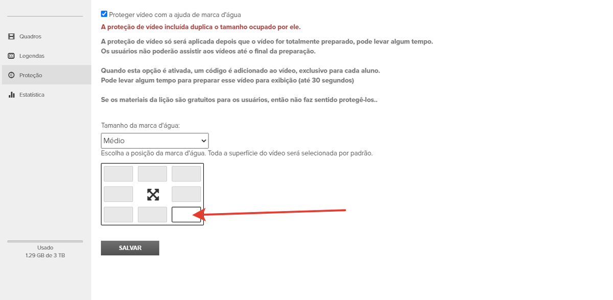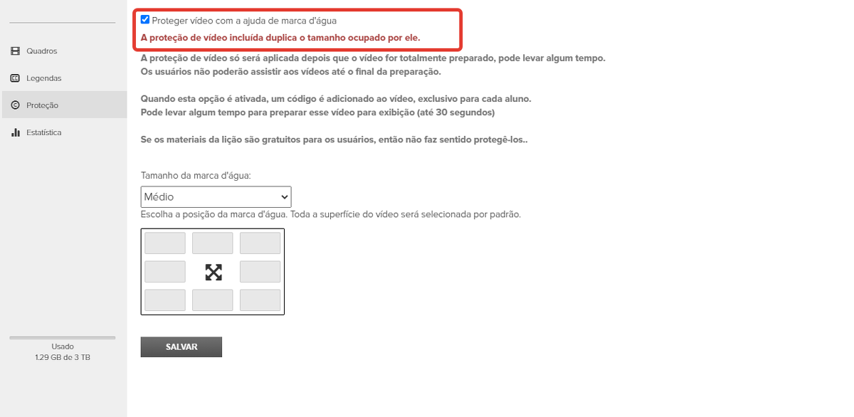 Para aplicar a proteção, marque a caixa de seleção "Proteger vídeo com marca d'água".