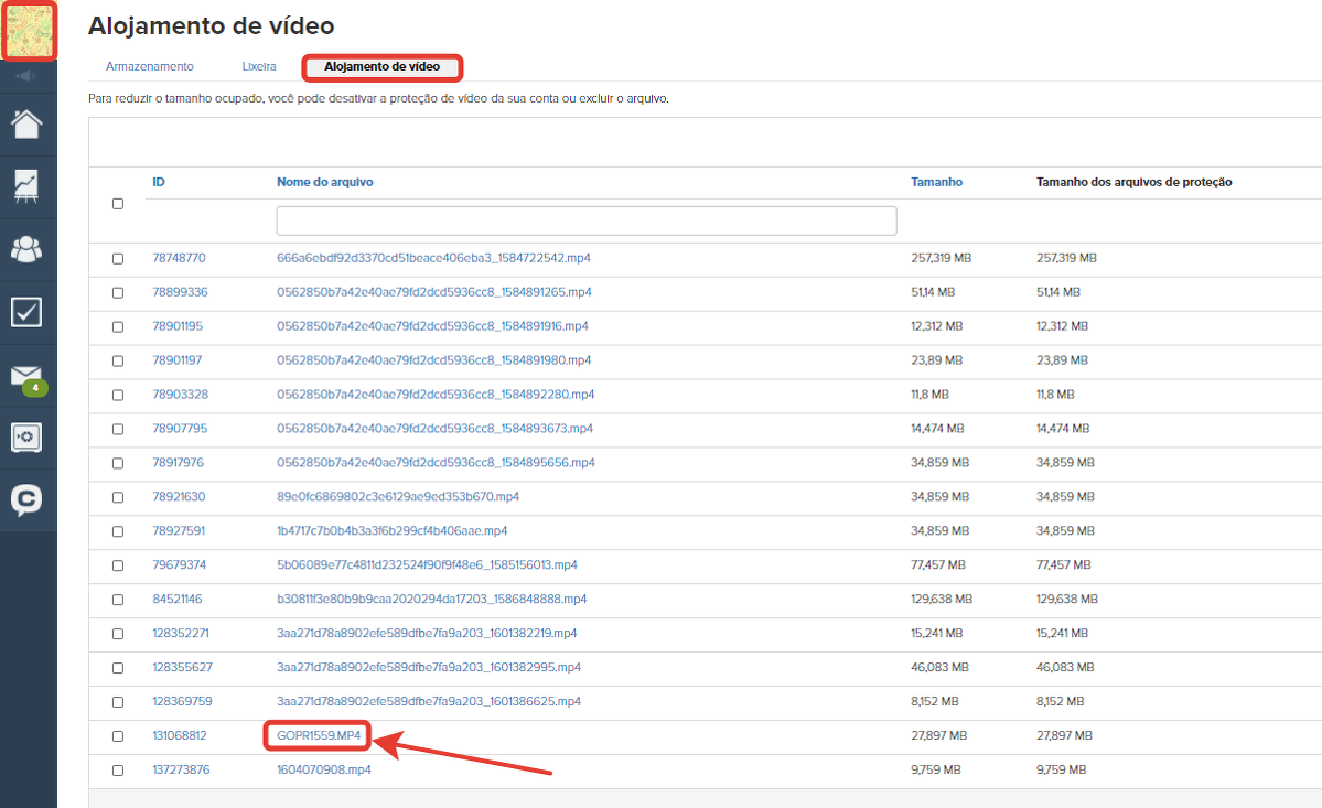 Na aba "Hospedagem de vídeo" de seu armazenamento de arquivos, as estatísticas de visualização estarão disponíveis ao clicar no título do vídeo.