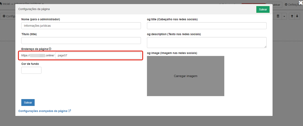 Para publicar informações jurídicas, você pode criar uma página separada do site. Isso pode ser útil caso precise colocar vários documentos jurídicos em páginas diferentes. Também é possível definir um endereço apropriado para essa página.