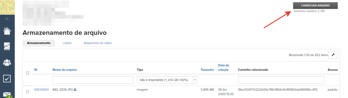 5. Inserir informações jurídicas, enviando um arquivo em PDF para o armazenamento de arquivos