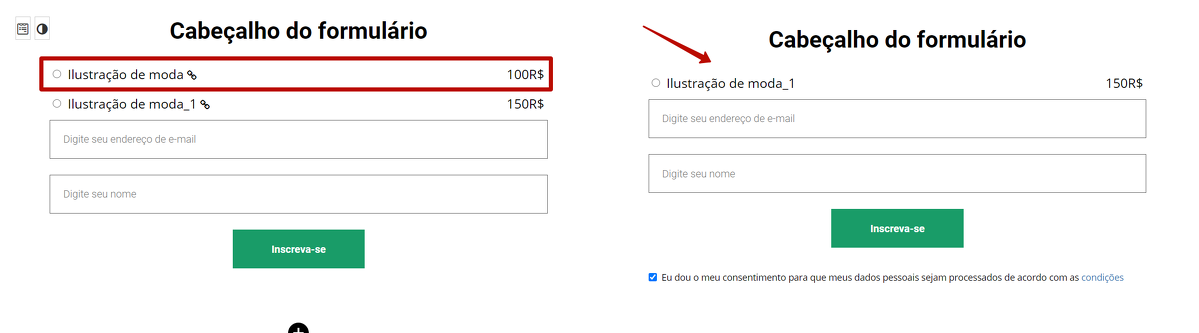 Se a oferta não estiver disponível para o usuário, podemos ocultá-la automaticamente no formulário de pedido.