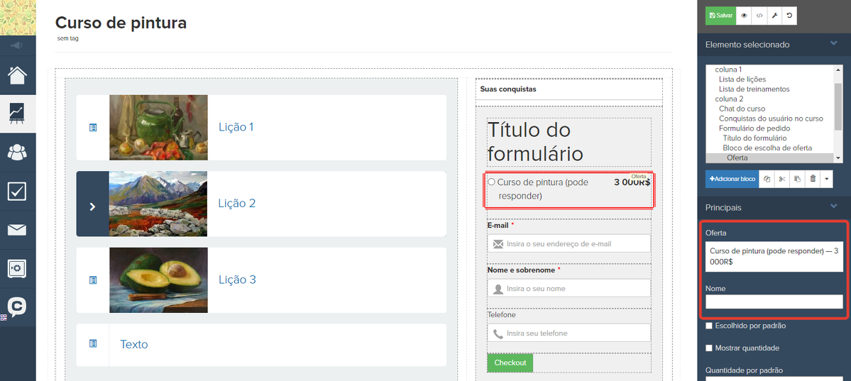 Em seguida, insira a oferta de cobertura no formulário da página onde o cliente pode fazer o pedido. Por exemplo, pode ser na página do treinamento adquirido.