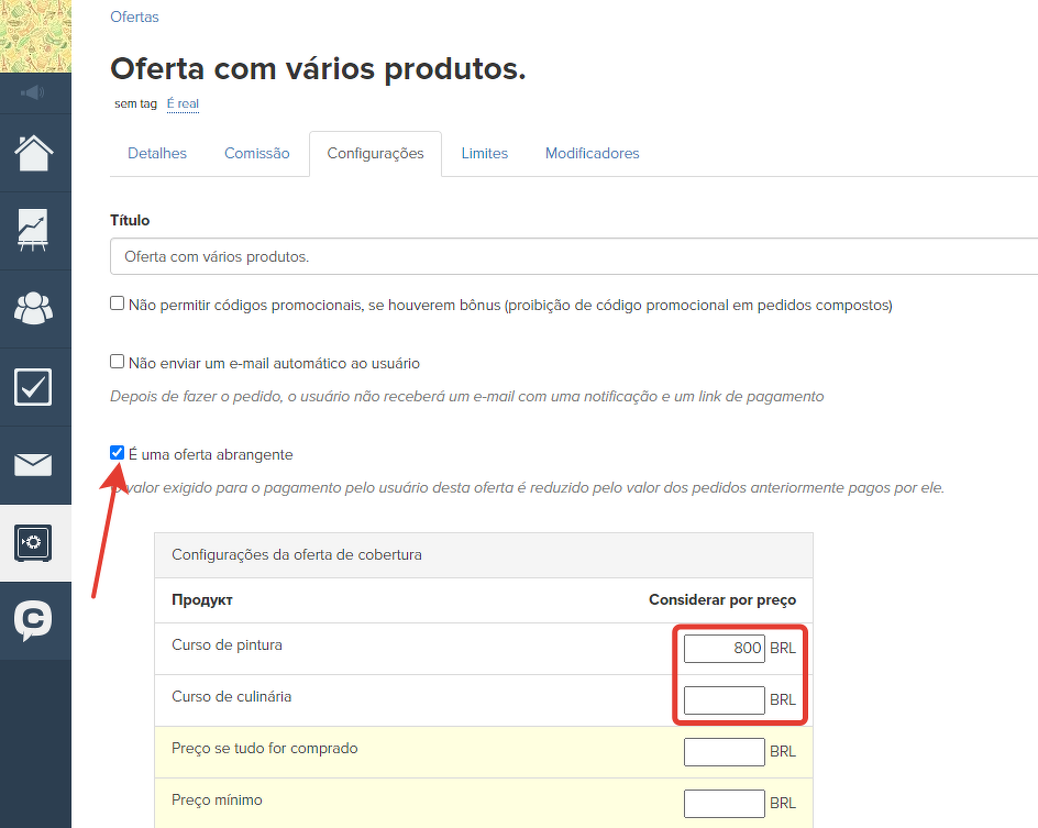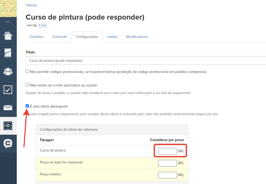 Você pode definir um desconto na oferta de cobertura. Ele será calculado sobre a diferença estabelecida nas configurações da oferta de cobertura.