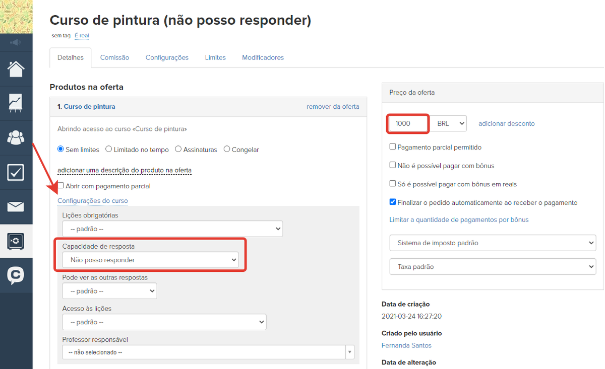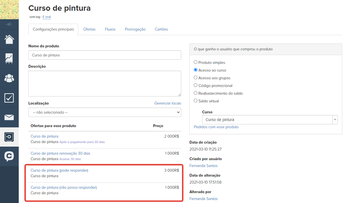 Importante: para o funcionamento correto, não é recomendável excluir ou fazer alterações nos produtos após o início das vendas. Essas ações podem levar à perda de acesso ao treinamento para clientes com compras ativas, além de causar um impacto negativo nos pedidos e compras.