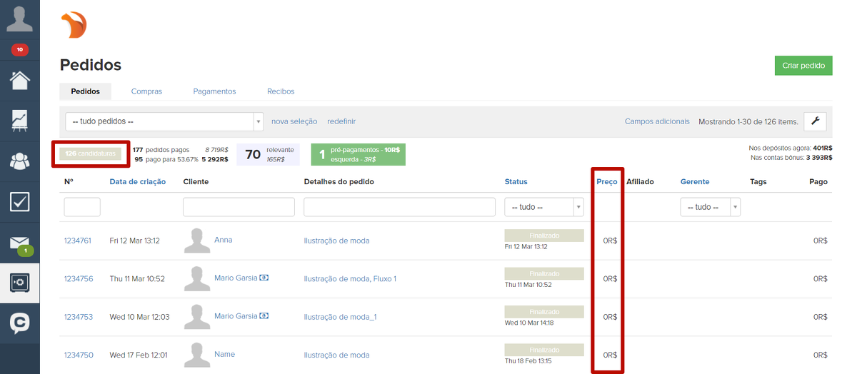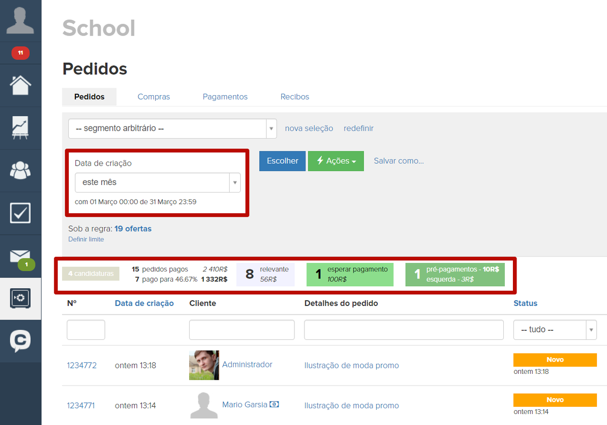 1. Solicitações. Essa seção indica o número de pedidos criados para ofertas gratuitas (ou seja, ofertas com valor igual a 0). Ao clicar nela, será gerada uma lista desses pedidos .