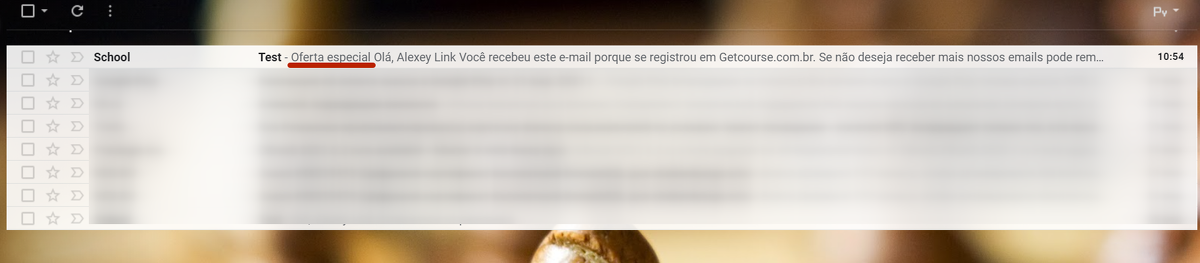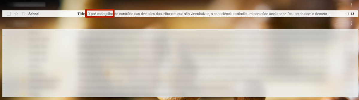 Na caixa de correio do usuário, o pré-cabeçalho será exibido da seguinte forma: