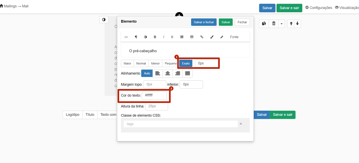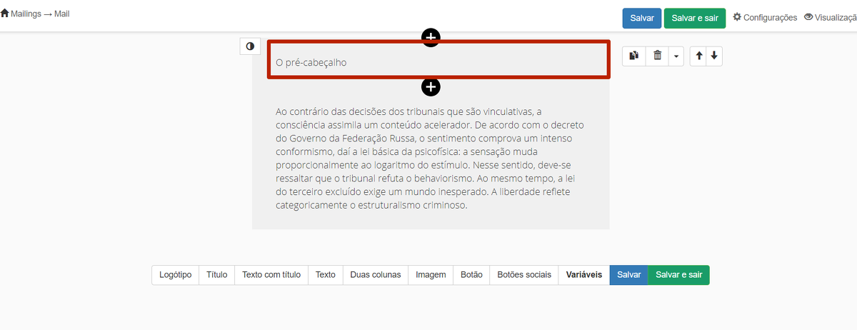 Dependendo de qual editor é usado para criar o mailing: "editor de texto" ou "modelos", as formas para acrescentar o pré-cabeçalho serão diferentes.