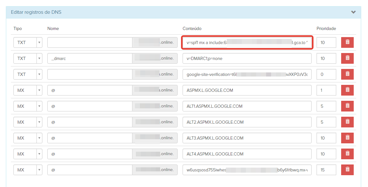Se você for enviar e-mails não apenas da interface GetCourse, mas também da interface Gmail.com, será necessário verificar o valor do registro SPF do domínio.