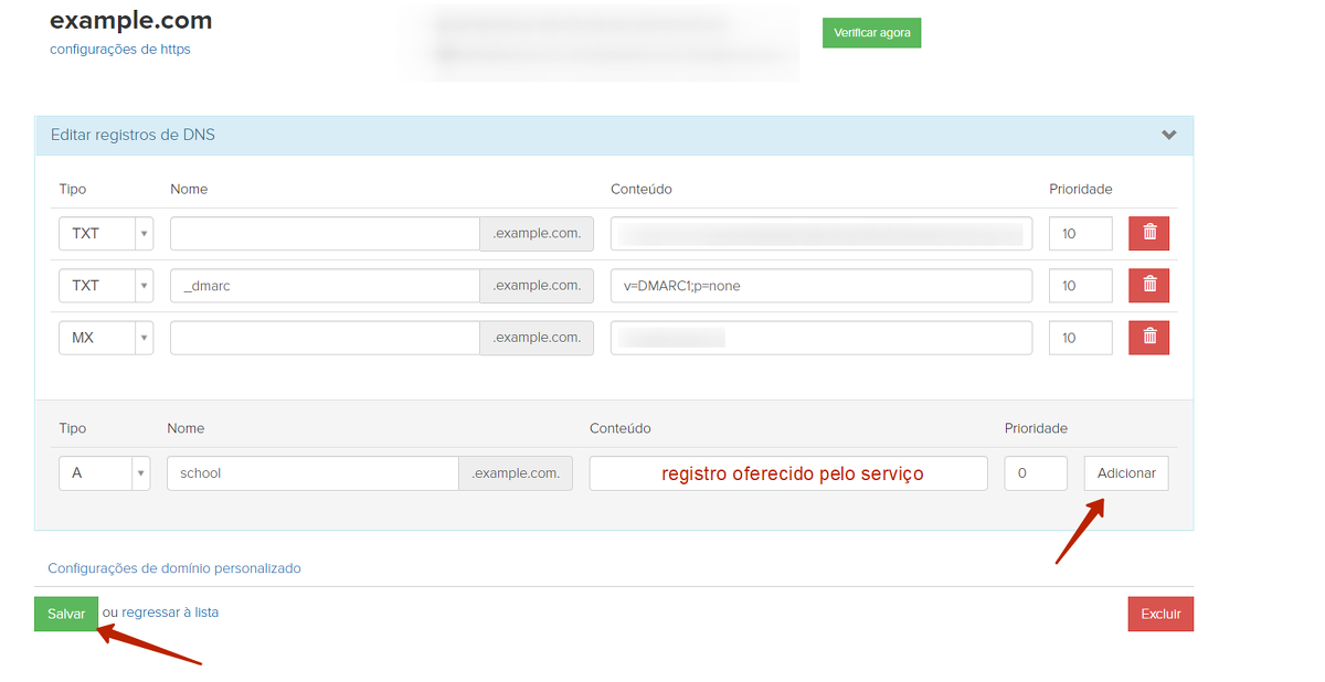 - A atualização da zona DNS pode levar até 72 horas após as alterações terem sido realizadas.