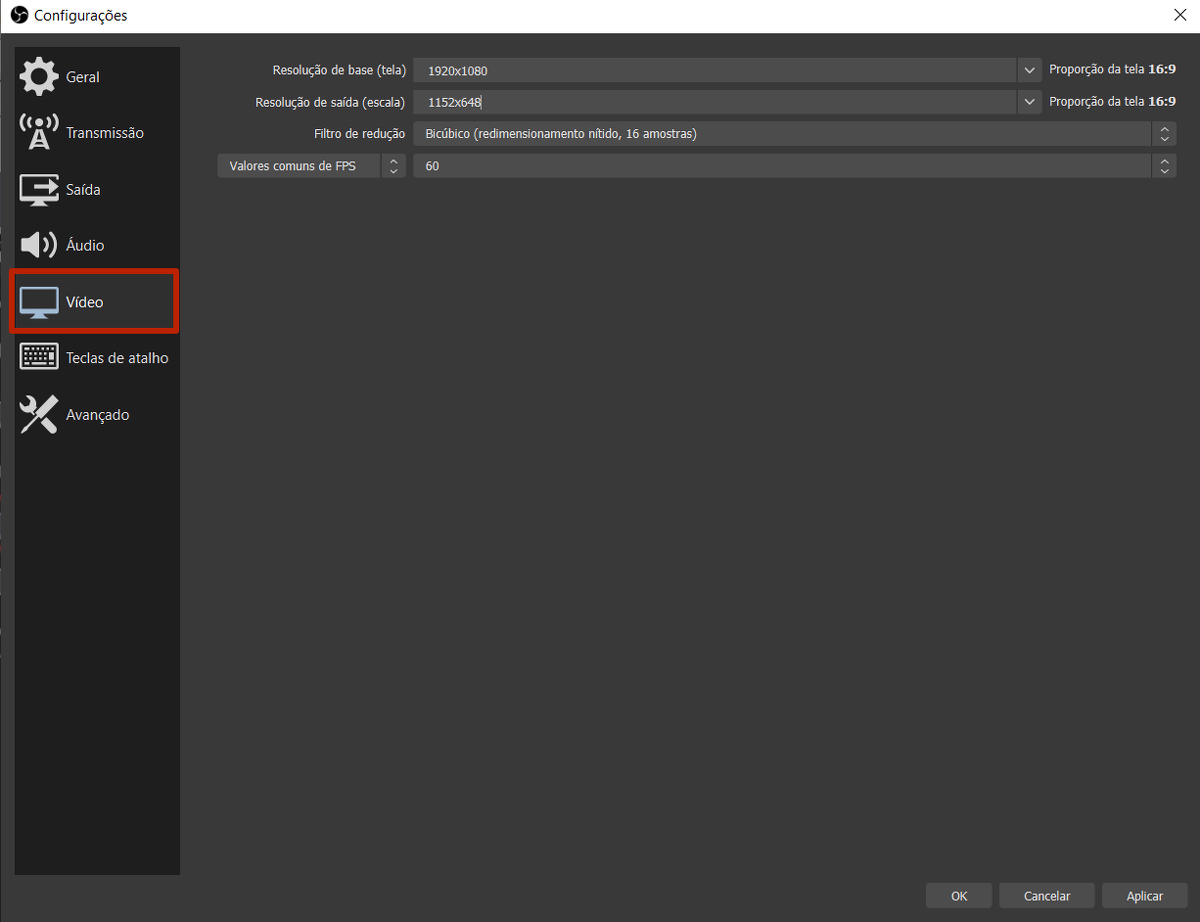 Ao conduzir um webinar via OBS, a qualidade do webinar é influenciada pelos parâmetros definidos no menu "Configurações": o número de quadros por segundo, a resolução do vídeo e sua taxa de bits.