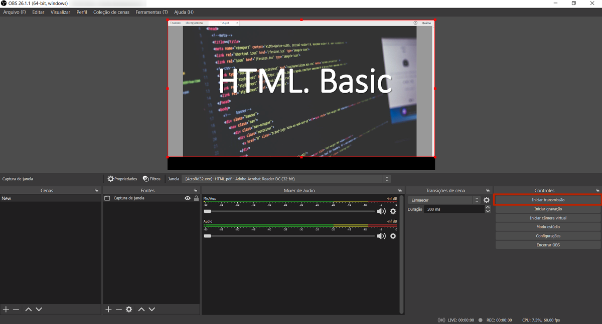 Imediatamente após (ou imediatamente antes) no OBS Studio, clique em "Iniciar transmissão".
