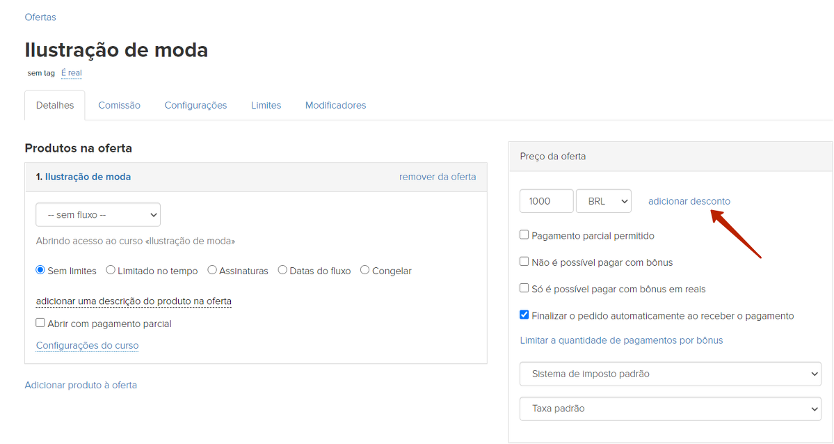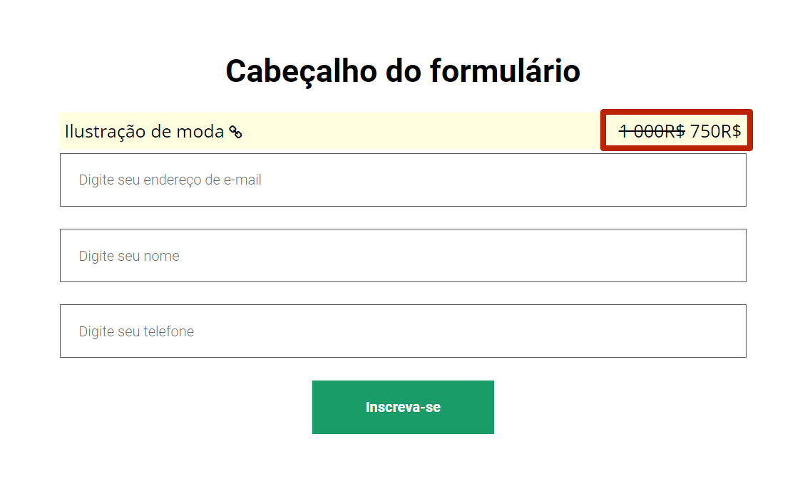 Para que o valor no widget ou formulário fique riscado ao lado do preço real, é necessário colocar um desconto na oferta.