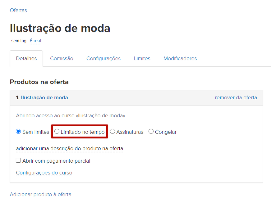 Também é possível usar uma assinatura para limitar o período de validade do produto. Ele pode ser renovado ou congelado, bem como programado para a renovação automática (pagamentos recorrentes).