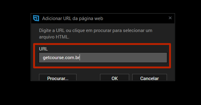 Para adicionar uma janela do navegador, você precisa clicar em "Adicionar fonte" => "Webpage" e inserir o endereço do site.