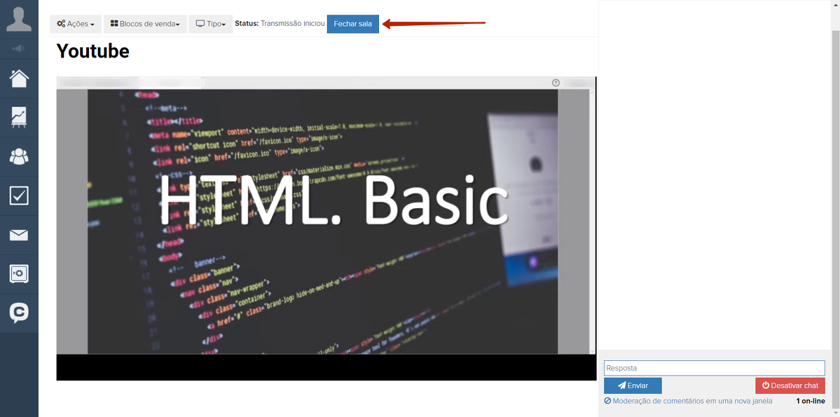 Depois disso, na GetCourse, clique em "Fechar sala".