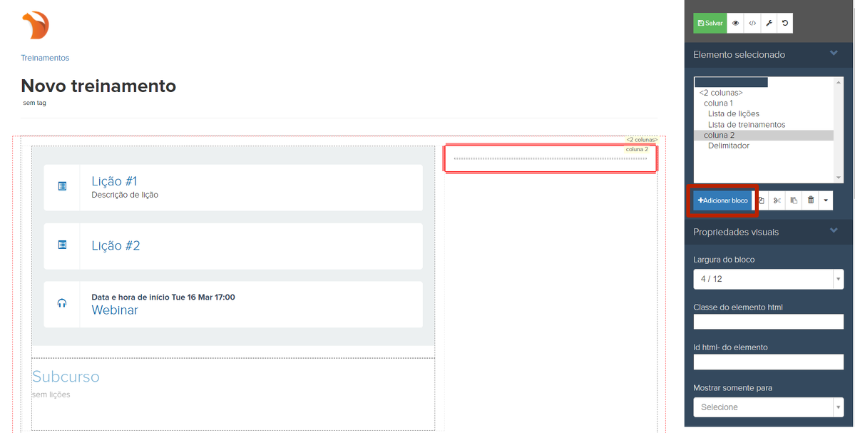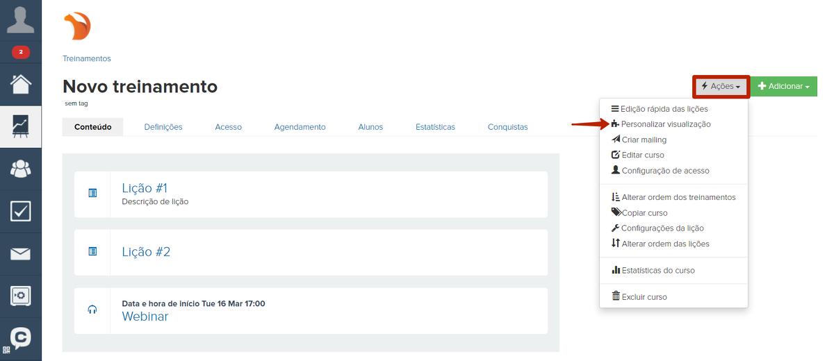 Entre no treinamento e clique em "Ações" – "Configurar Visualização":