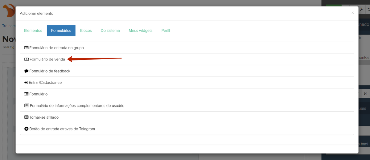 Adicione o bloco "Formulários" - "Formulário de vendas":