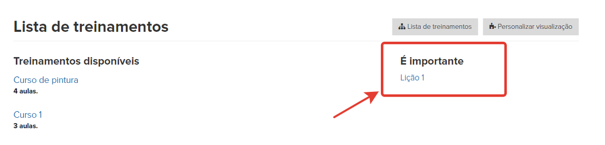 - Fixar aula: essa opção exibe o bloco "Importante" com hiperlinks para a aula na página principal dos treinamentos, com data fixada dentro dos próximos 7 dias.