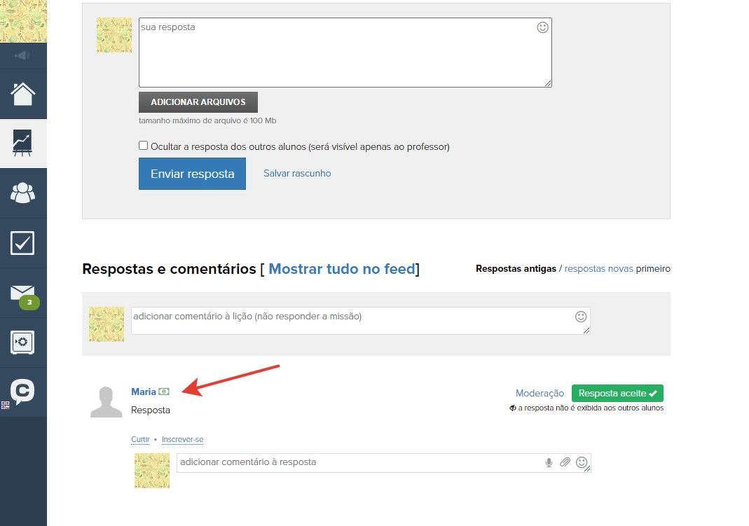 - Ocultar datas de comentários e respostas: permite esconder a data dos comentários e das respostas na aula