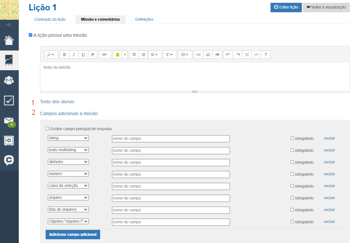 Você também pode adicionar uma “Resposta ideal” à seção “Campos adicionais da tarefa”, que servirá como uma referência para os professores ao avaliarem as respostas às tarefas.