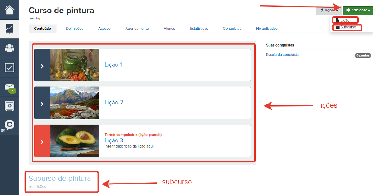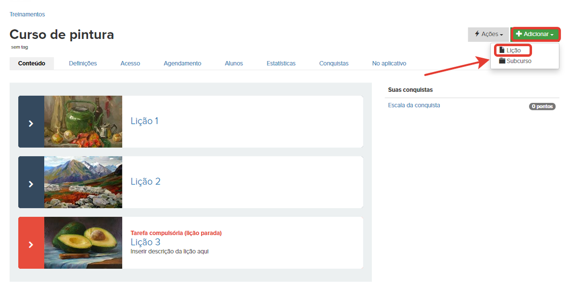 Então, para criar um novo curso, você precisa: