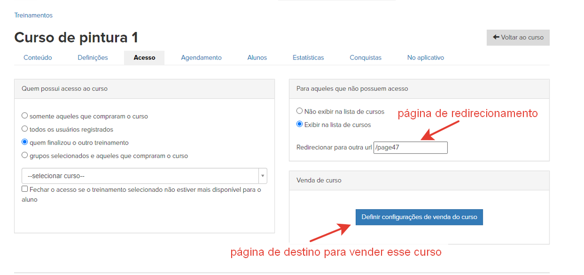 1. Definir a regra de acesso ao curso - por compra, por grupo, por passagem de outro curso ou acesso aberto a todos os usuários registrados.