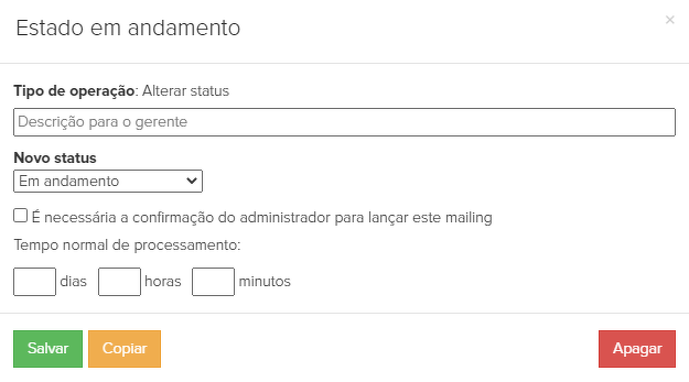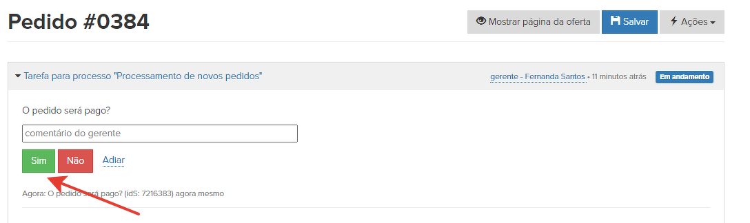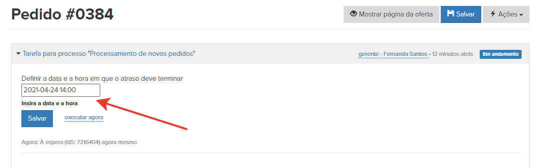 12. "Estado em andamento" - o processo define automaticamente a ordem para o status "Em andamento":