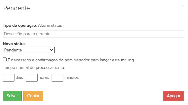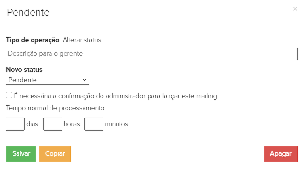 30. "Pendente" - se o cliente não tiver certeza de que pagará pelo pedido, o gerente coloca o pedido no status "Pendente".