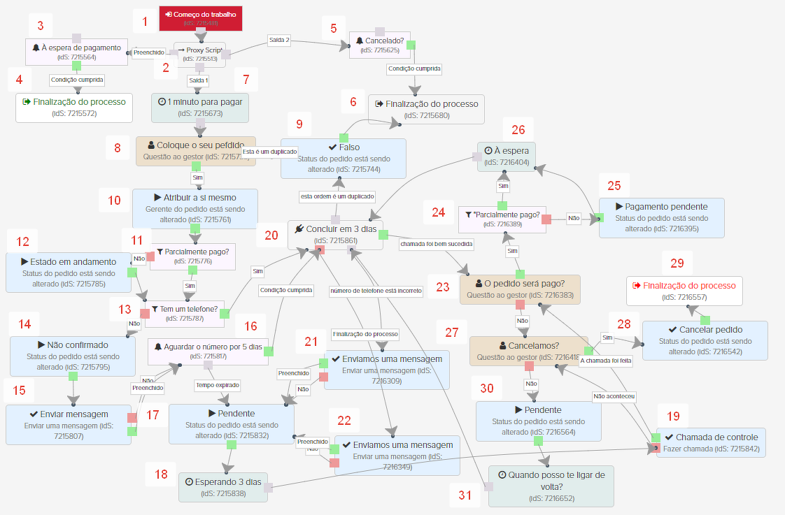 4. "Conclusão do processo" - o processo é concluído, nenhuma outra ação é tomada sobre esta ordem. A conclusão do processo pode ser positiva, neutra ou negativa - isto pode ser usado para conveniência e clareza. Neste caso, especificamos que o pagamento do pedido é uma variante positiva da conclusão do processo: