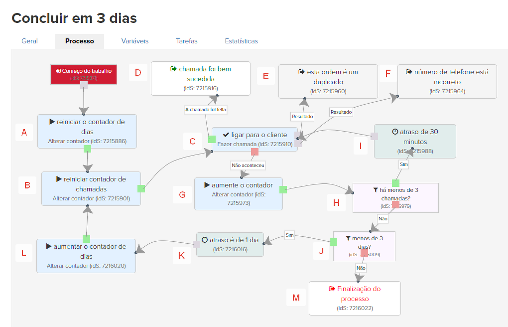 20. "Concluir em três dias" é um subprocesso separado chamado "Concluir em 3 dias".