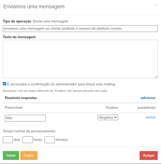 Se não tivermos conseguido chegar ao cliente dentro de três dias, enviamos uma mensagem para o cliente para entrar em contato conosco (22):