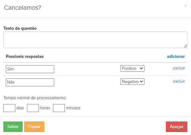 27. "Cancelamos?" - é uma pergunta para o gerente com base nos resultados da conversa com o cliente. Esta é uma pergunta com duas opções de resposta - "Sim" e "Não":