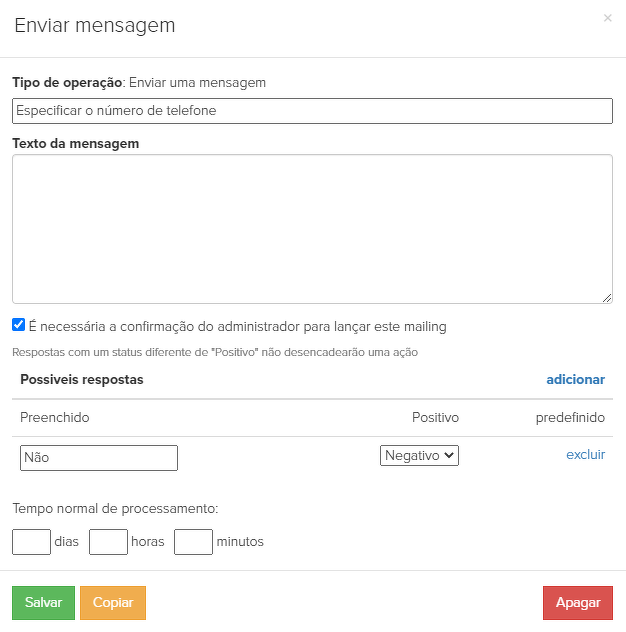 15. "Enviar mensagem" - se o cliente não especificou o número de telefone, o gerente pode enviar uma mensagem para o cliente para especificar o número de telefone.