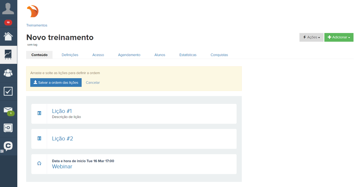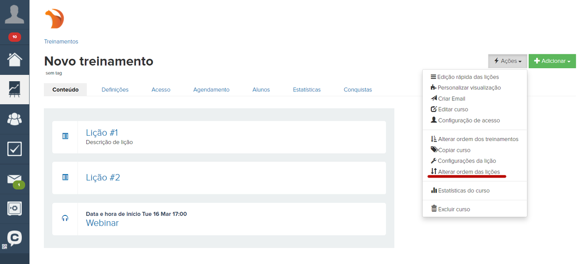 Às vezes, é necessário alterar a lógica da realização do curso pelos alunos - ajustar a sequência das aulas. Para fazer isso, você precisa alterar a sequência das aulas no curso.