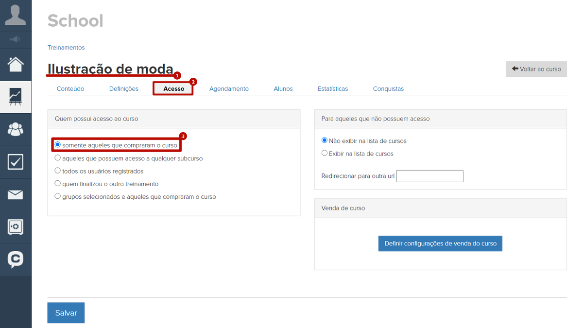 - Selecionar a opção "Somente aqueles que compraram o curso",