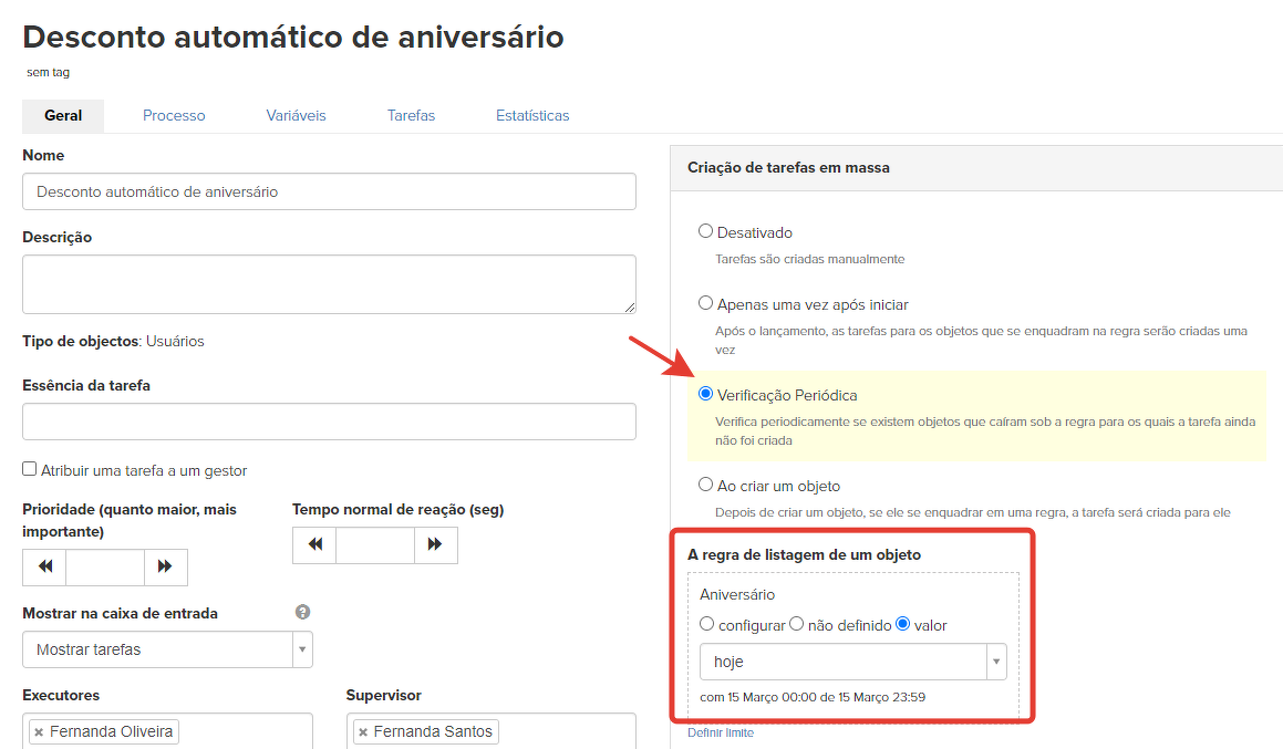 Para emitir um desconto automático de aniversário, você precisa configurar um processo.