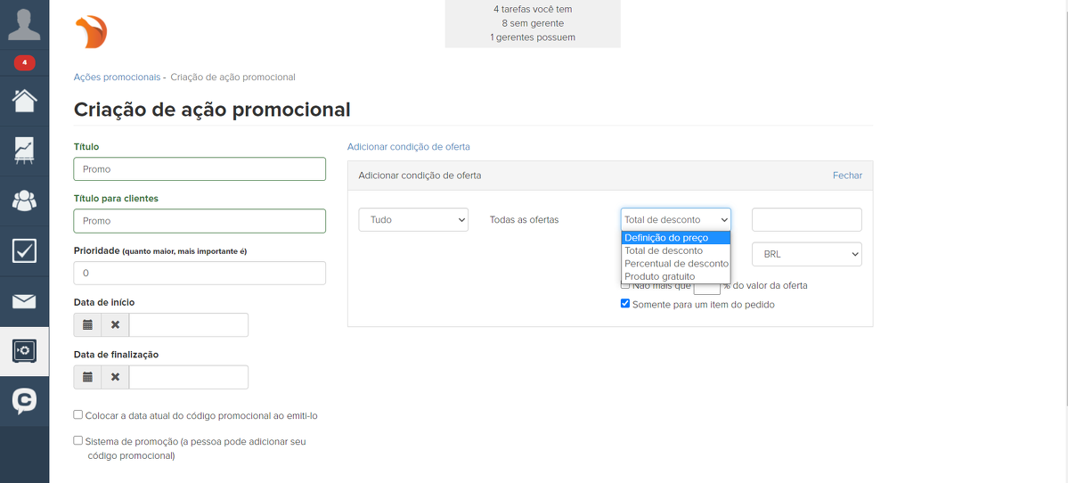 No artigo "Como configurar uma promoção", você pode conhecer essas configurações com mais detalhes.