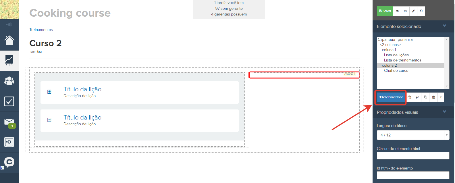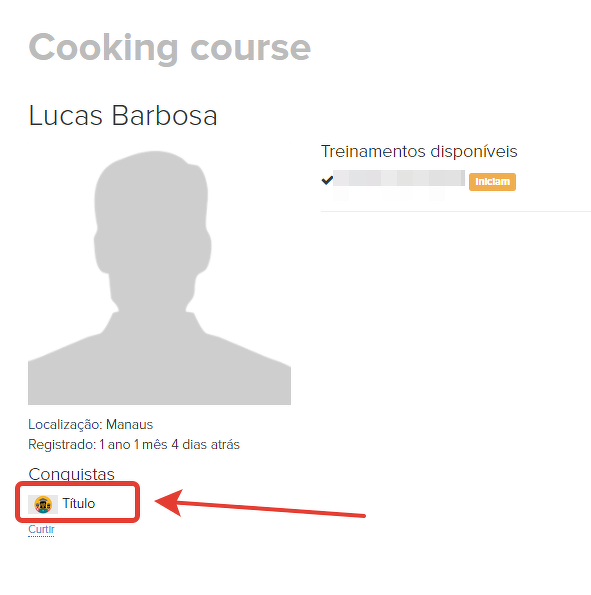 Para que o usuário possa ver suas realizações no próprio curso, é necessário adicionar o bloco "Conquistas do usuário" no curso. O usuário verá o número de pontos e seu lugar no ranking geral nessa escala.