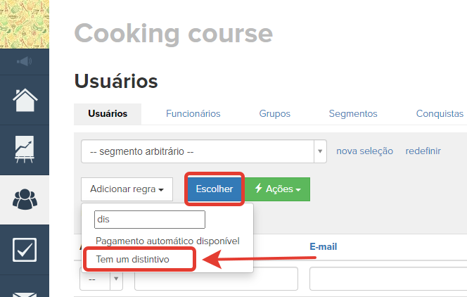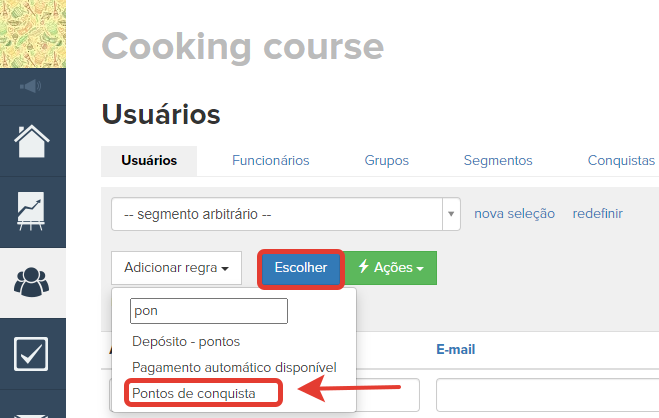 Você pode segmentar usuários pelo número de pontos de conquista ou pela presença de uma medalha digital. Por exemplo, para dar início a um processo ou a newsletters.