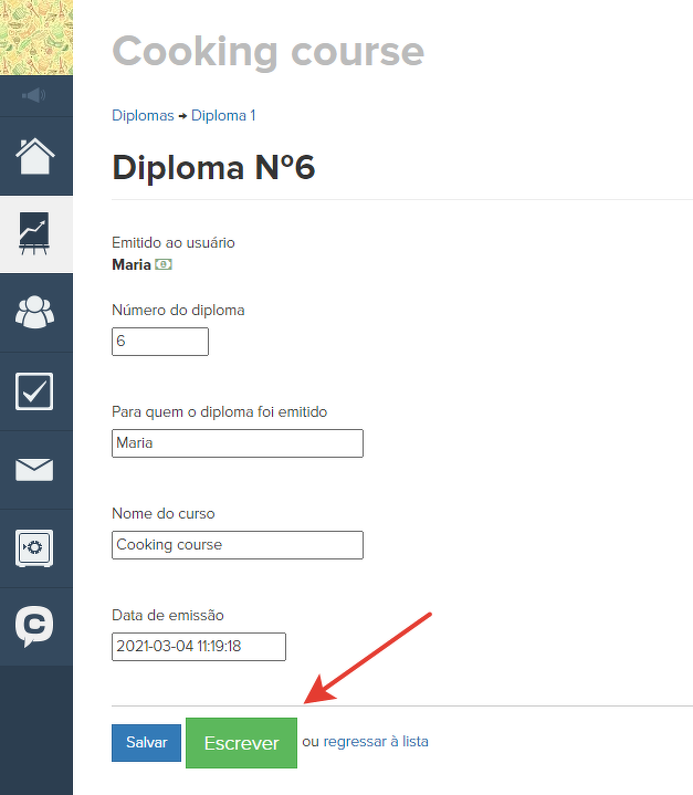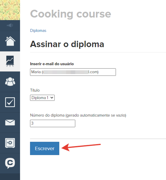 Você também pode configurar a emissão automática de um diploma após a conclusão do curso.
