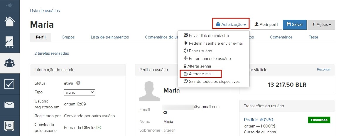 Para alterar o endereço de e-mail, o proprietário da conta deve redigir uma solicitação a partir do e-mail atual do proprietário e enviar para contato@getcourse.com.br