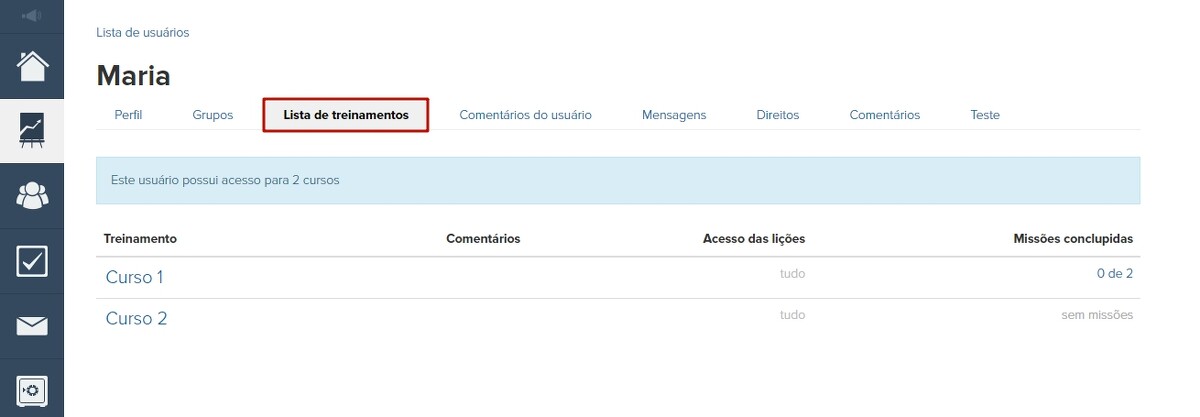14. Cursos do usuário. Breve informação sobre quais cursos estão disponíveis para o usuário.