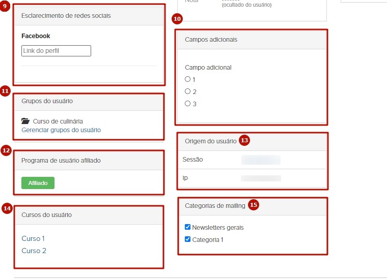 10. Campos adicionais. Todos os campos adicionais do usuário serão exibidos aqui.