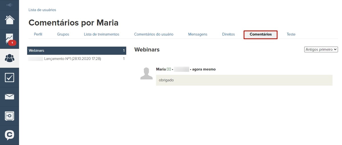 - Comentários - comentários do usuário deixados em webinars e autowebinars realizados na plataforma.
