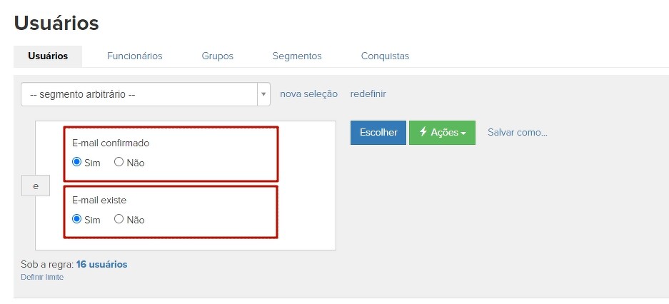 Pelo status do endereço de e-mail, você pode fazer uma seleção de usuários: