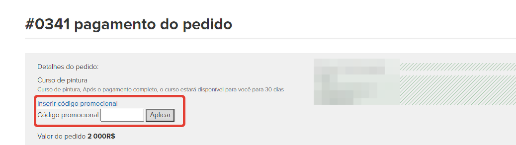 Depois de aplicar o código promocional, o pedido receberá automaticamente o status "concluído" e o usuário terá acesso ao curso.
