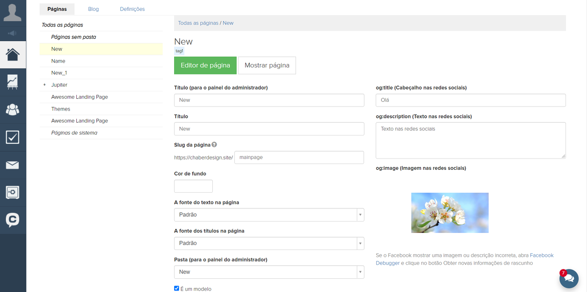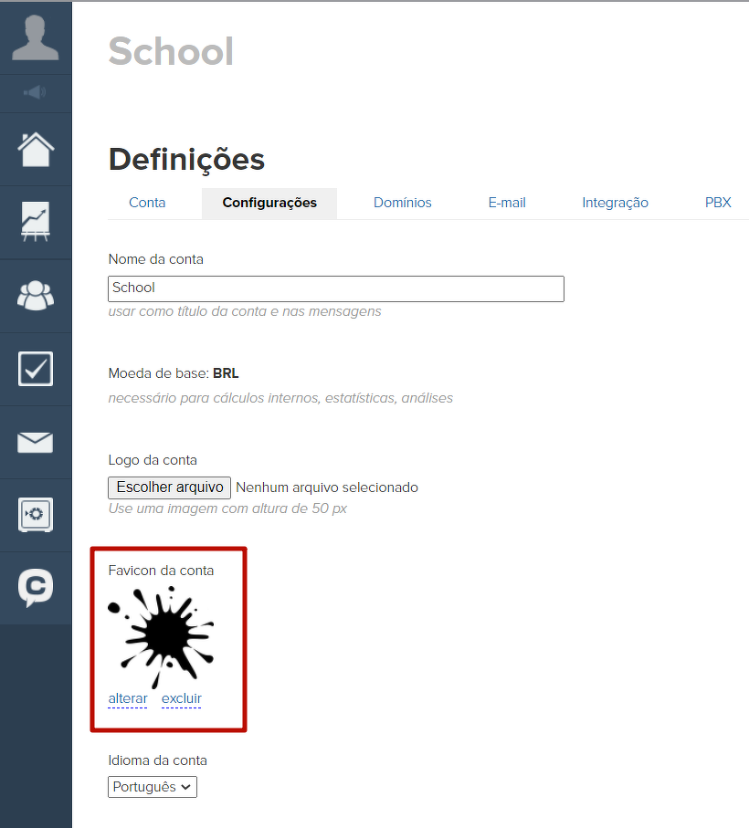Também nas configurações da conta, você pode configurar o favicon para todas as páginas do seu site.